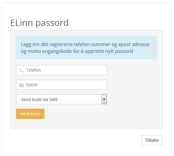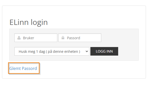 Er du på en pc kan du gjøre dette via https://elinn.no/login/ og aktiver "Glemt Passord" knappen.