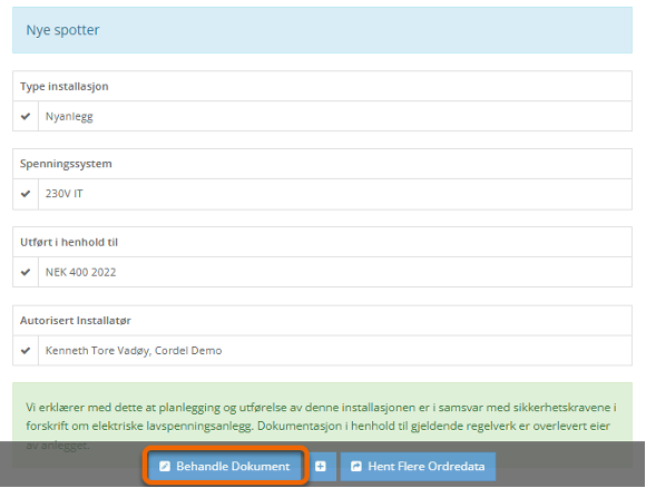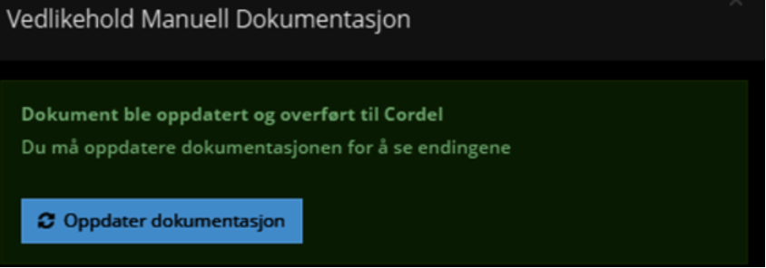 Trykk Oppdater dokument for å sende dokumentet til Cordel.