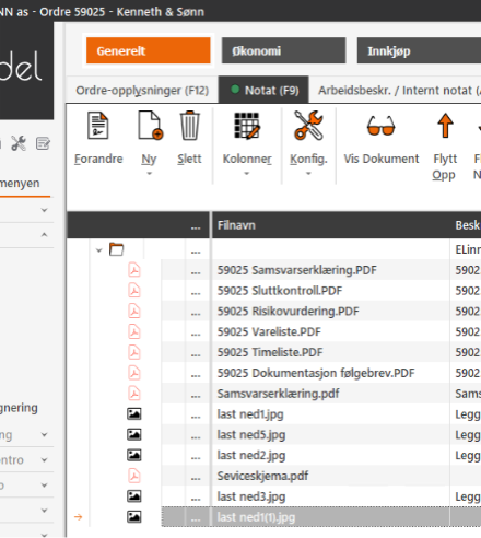 Nå har du mulighet til å sende over filer fra Elinn til Cordel før ordren er avsluttet i Elinn.